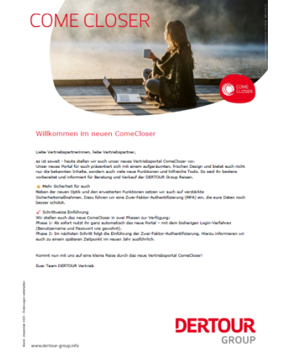 Unser neues Portal für euch präsentiert sich mit einem aufgeräumten, frischen Design und bietet euch nicht nur die bekannten Inhalte, sondern auch viele neue Funktionen und hilfreiche Tools. So seid ihr bestens vorbereitet und informiert für Beratung und Verkauf der DERTOUR Group Reisen.